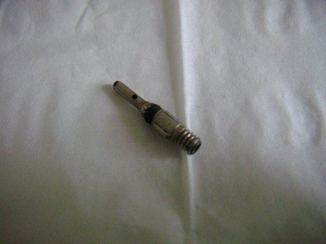 バルブを抜いてみると、黒いゴムの部分が駄目になって殆ど無かった。本当はもっと長いようだ。