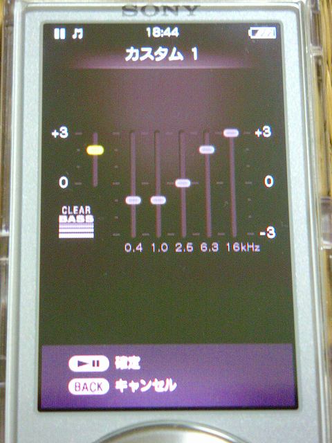 イコライザを設定できるのはうれしいのだが、各帯域を±3の幅で上げ下げするだけなので調整が難しい。0.5ずつ上げ下げできればこれでも良いのだが、当然1ずつの大雑把な設定しかできない。特に高音は+2.5ぐらいを試したかった。